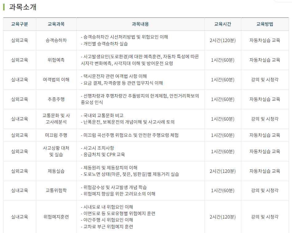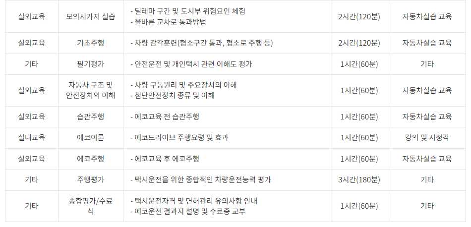 그래서 개인택시를 운행하기 위해서 양도, 양수를 하는 과정에서 필요한게 양수교육입니다. 여객자동차 운수사업법이 개정되면서 양수요건이 완화되어 일정기간 무사고를 유지하고 양수교육까지 이수한 경우에는 사업용 무사고기간 대체경력을 인정을 받습니다.