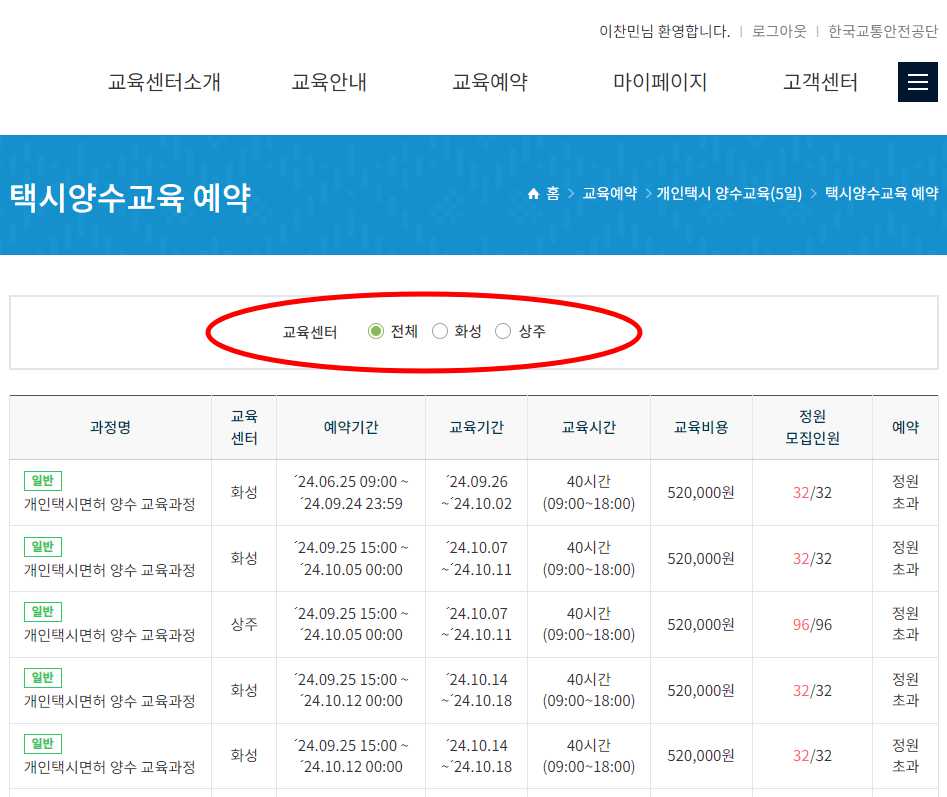 개인택시 양수교육 추첨제 예약대기