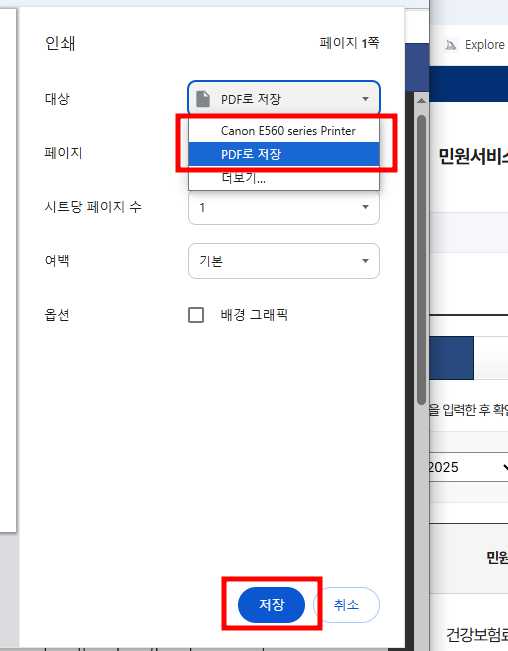 9) PDF로 저장을 누르고 파일로 저장을 한 뒤에, 파일을 그대로 전송하거나 인쇄도 할 수 있으니 원하는 방식으로 제출을 해주면 되겠습니다.