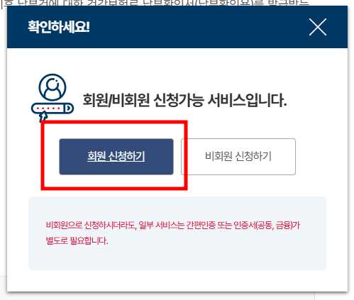 2) 회원 또는 비회원 신청하기를 누릅니다.