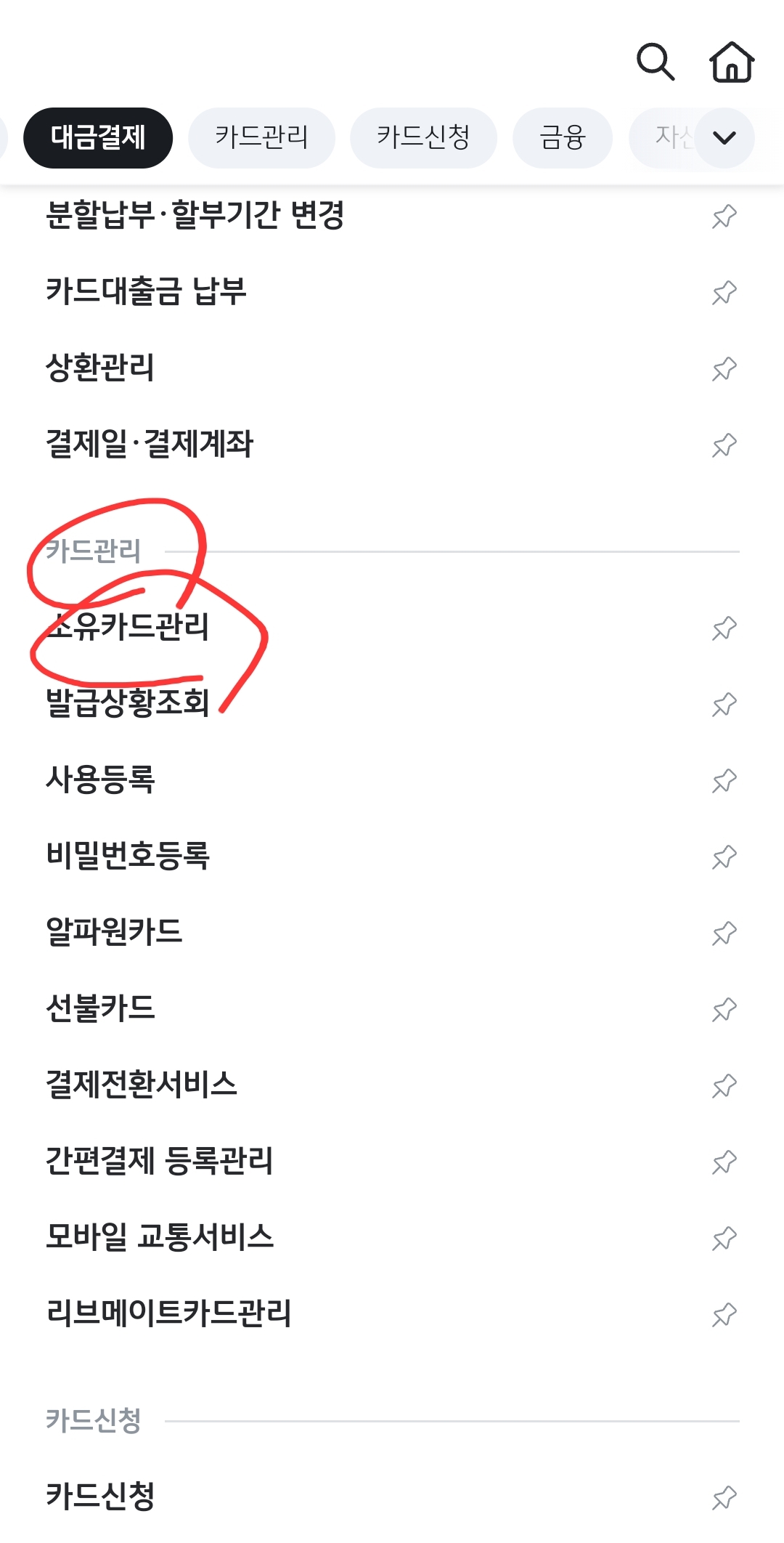 - 각 카드사 홈페이지에 접속하여 카드 발급하기로 이동합니다.