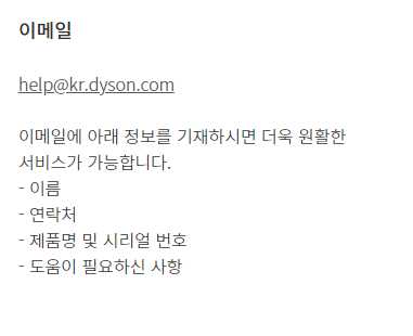 - 제품 보증기간 확인: 제품 보증기간 내에 발생한 문제라면 무료로 AS를 받을 수 있는지 미리 확인하시기 바랍니다. 다이슨 제품의 경우 무상 보증기간이 2년입니다. 특정 제품은 다를 수도 있으니 확인하시기 바랍니다.