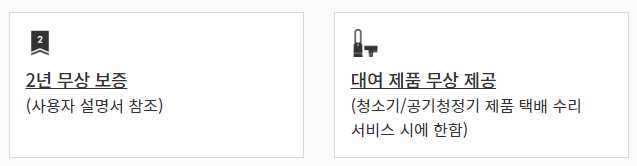 - 택배를 이용한 제품 수리의 경우 '청소기', '공기청정기' 제품은 수리기간 동안 대여 제품을 무상으로 제공해줍니다.