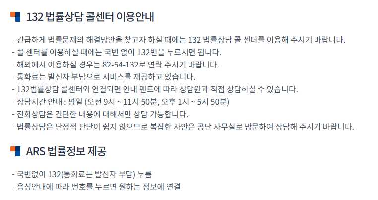 부동산 무료 법률상담 전화번호는 132번으로 전화하여 상담을 받을 수 있고, 해외에서 전화를 하는 경우에는 82-54-132로 전화를 하시면 됩니다.