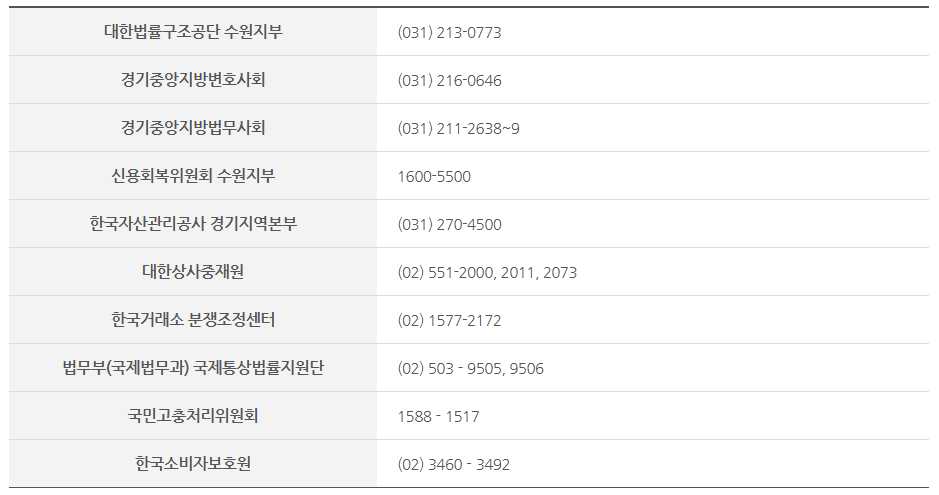 그리고 해당 센터말고도 다른 무료 법률 상담 기관이 있으니 사진을 참고하셔서 이용해보시기 바랍니다.