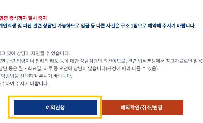 4) 가장 하단으로 내려오면 '예약신청' 버튼이 보이실겁니다. 눌러줍니다.