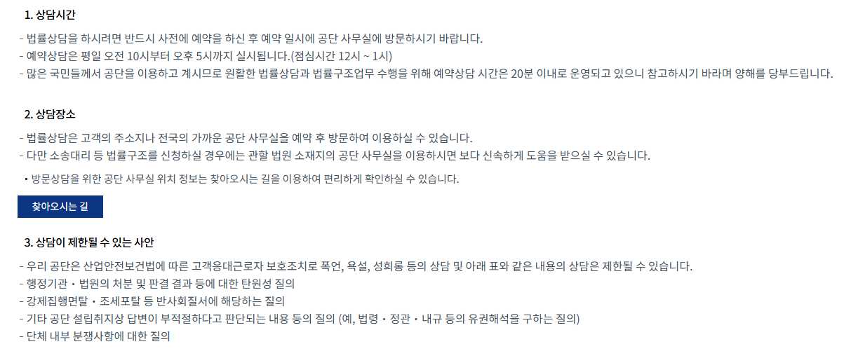 상담 연결이 지체된다면 해당 홈페이지에서 제공하는 법률 정보나 사례 내용을 확인하고, 간단한 문제는 해결할 수도 있습니다.