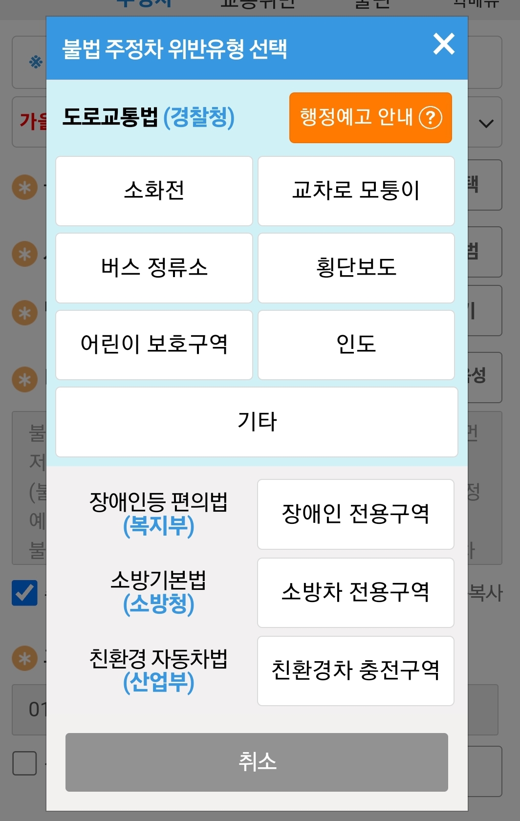 4) 위반유형을 선택하실 수 있는데요, 해당하는 위반사항에 맞는걸로 선택을 해줍니다.
