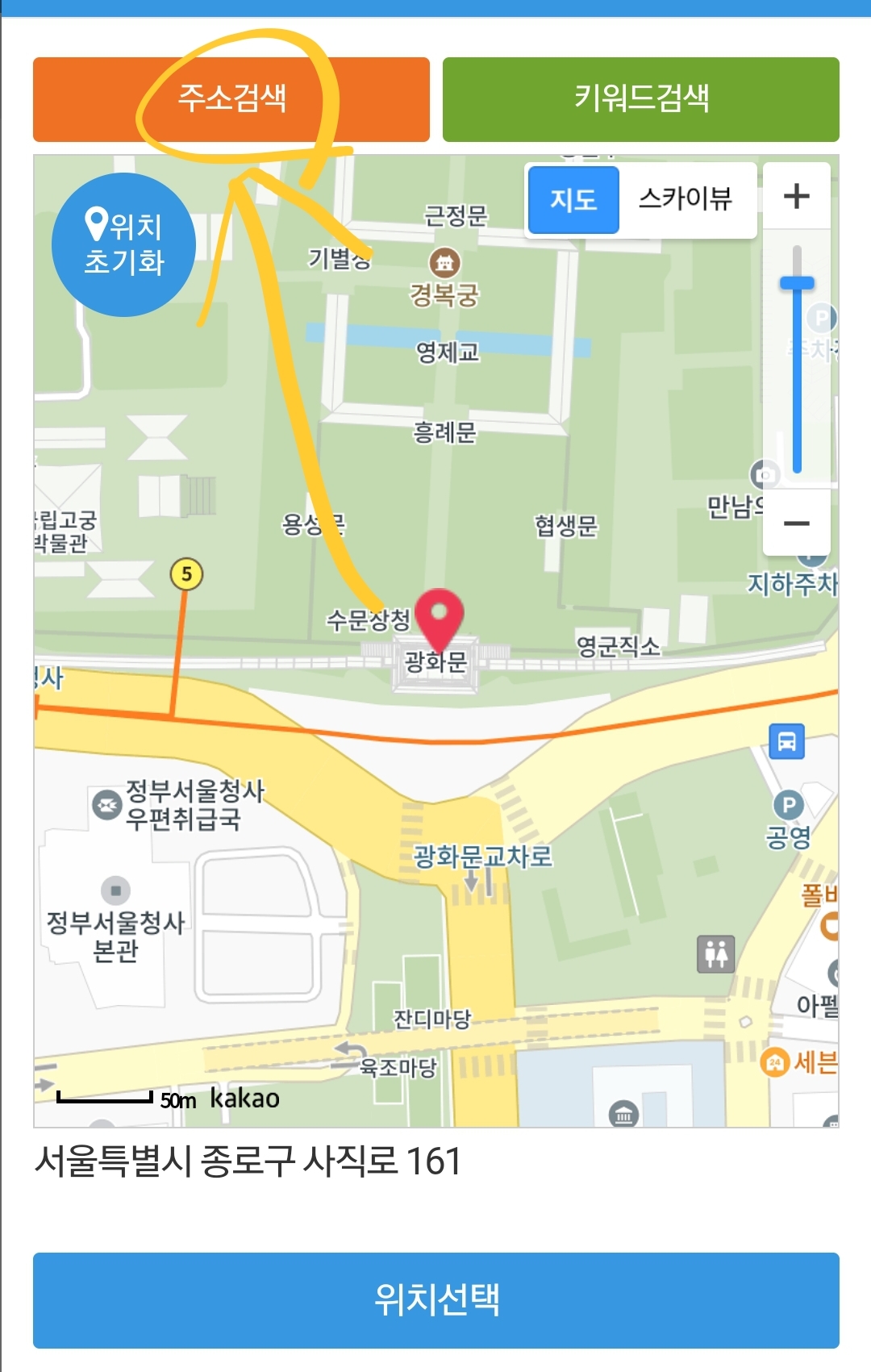 10) 주소검색을 눌러서 주소를 입력하고 위반이 일어난 주소를 찾아줍니다.