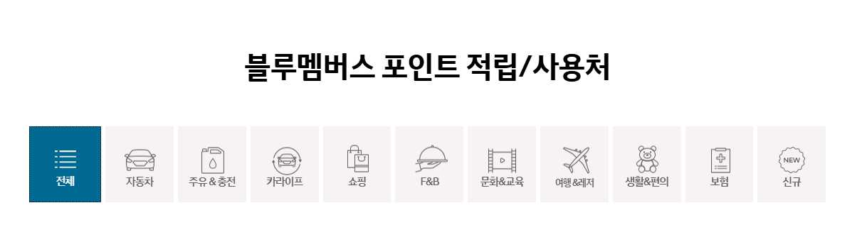 블루멤버스 포인트 사용처도 홈페이지에서 제휴처를 검색하여 확인할 수 있습니다.