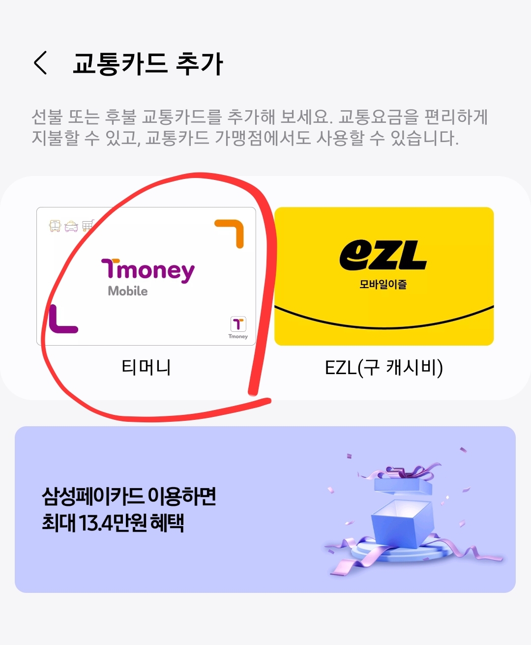 그리고 해당 사진처럼 삼성페이 월렛에서 티머리 교통카드 등록을 할때 오류가 발생하시는 분들이 계신데요, 해결 방법도 알아보겠습니다.