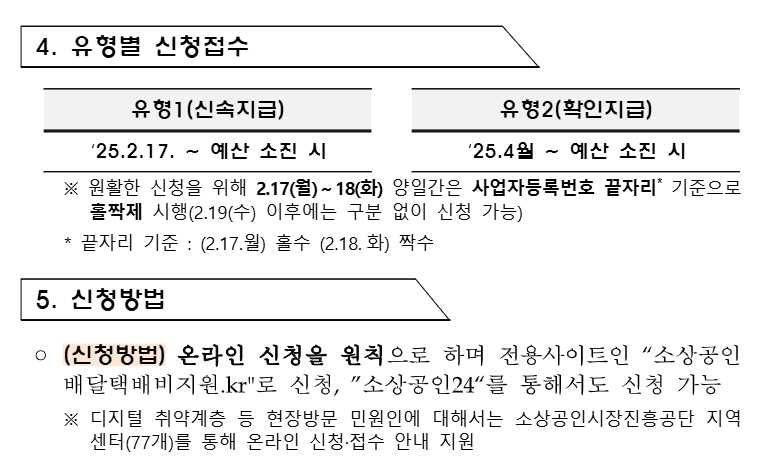 소상공인 배달비 택배비 지원금 신청은 공기관에서 운영하는 공식 홈페이지에서 신청이 가능하며, 신속지급 대상자와 확인지급 대상자로 나뉘어 신청이 가능합니다.