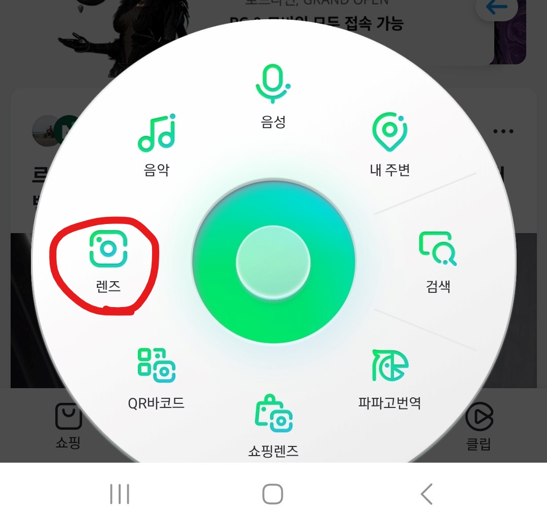 - 검색창 오른쪽에 초록색 동그라미 모양을 클릭합니다.
