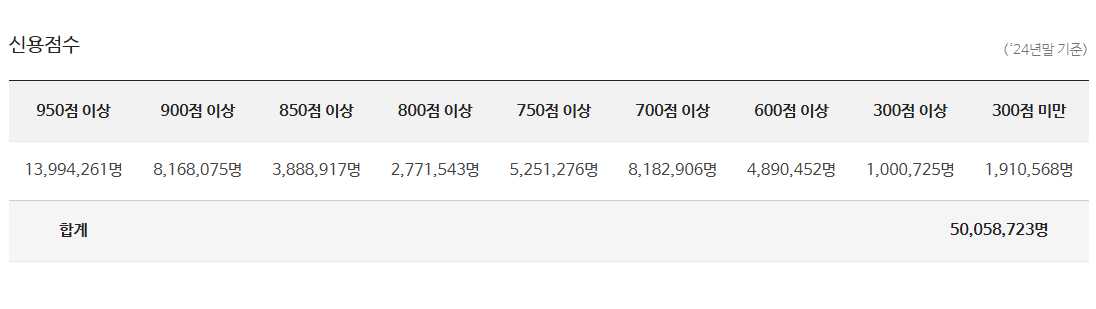 1금융권 대출 심사용 커트라인은 900점대가 기준!