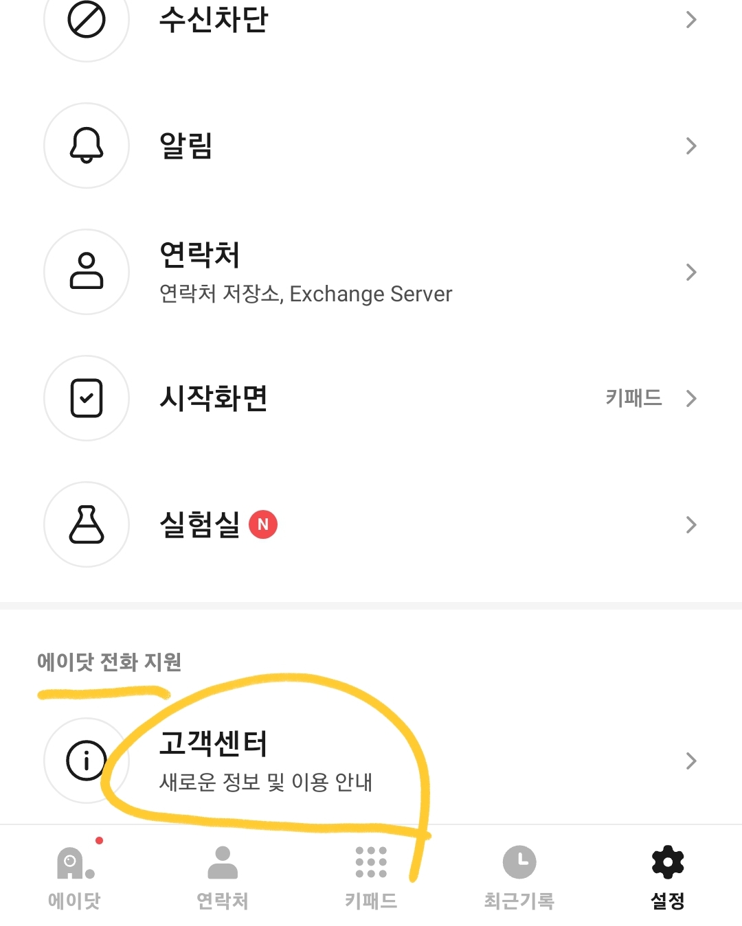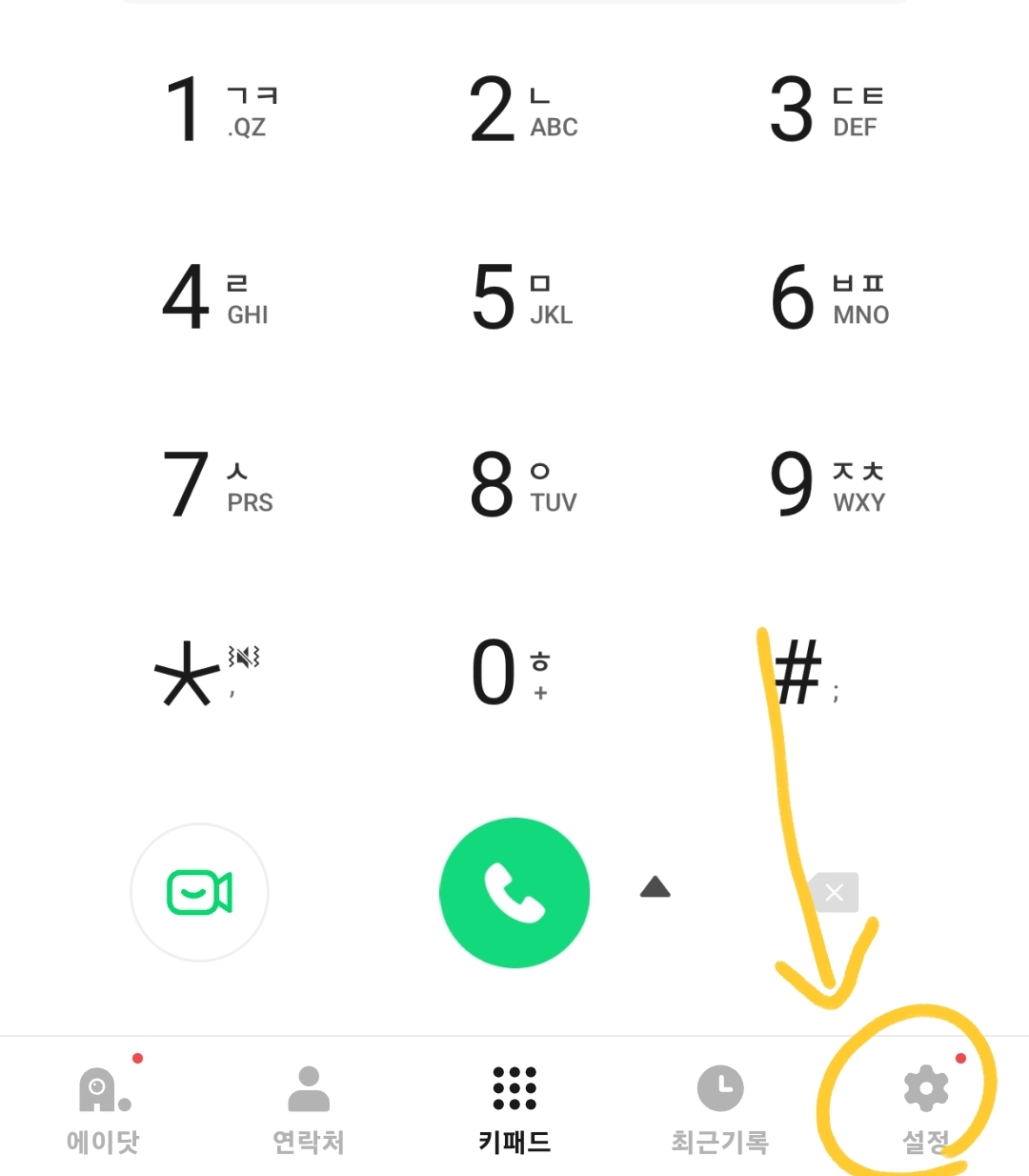 1) 에이닷 전화 앱에서 우측 하단에 설정에 들어갑니다.