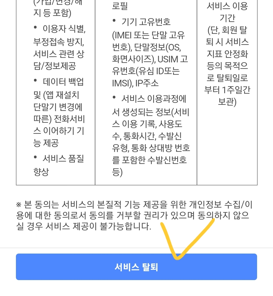4) 서비스 탈퇴를 눌러서 탈퇴하기를 합니다.