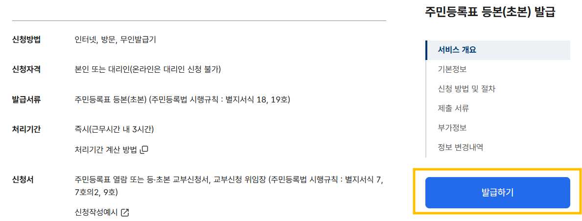 메인화면에서 주민등록등본 발급 및 조회를 눌러서 들어갑니다.
