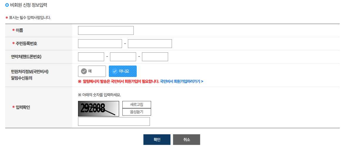 비회원으로 이용을 할 경우에는 정보를 입력해주셔야 합니다.