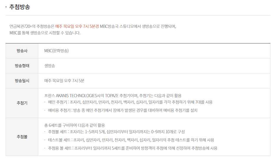 1등 당첨조건은 조와 6개의 숫자가 모두 맞으면 1등입니다. 그리고 2등은 조가 다르더라도 숫자가 모두 맞으면 당첨입니다. 보너스당첨은 조별로 추가 추첨을 진행하고, 그 숫자와 6자리 번호가 맞으면 당첨입니다.