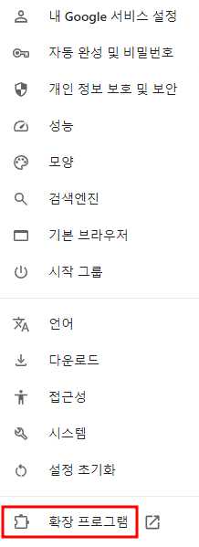 - 브라우저 설정에서 "확장 프로그램" 을 들어갑니다.