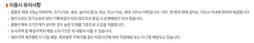 그리고 택배 발송이 불가한 제한물품도 있으니, 주의하시기 바랍니다.