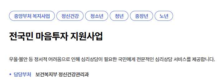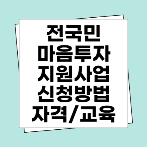 전국민 마음투자 지원사업은 정신적인 문제와 멘탈 케어 및 심리 치료와 교육을 지원하는 정부 프로그램입니다. 이 사업은 모든 국민이 정신적으로 건강할 수 있도록 여러가지 지원을 제공하는데요, 오늘은 이 사업의 자격과 신청 방법 그리고 교육에 대해서 알아보겠습니다.