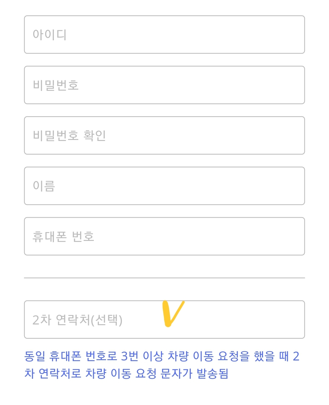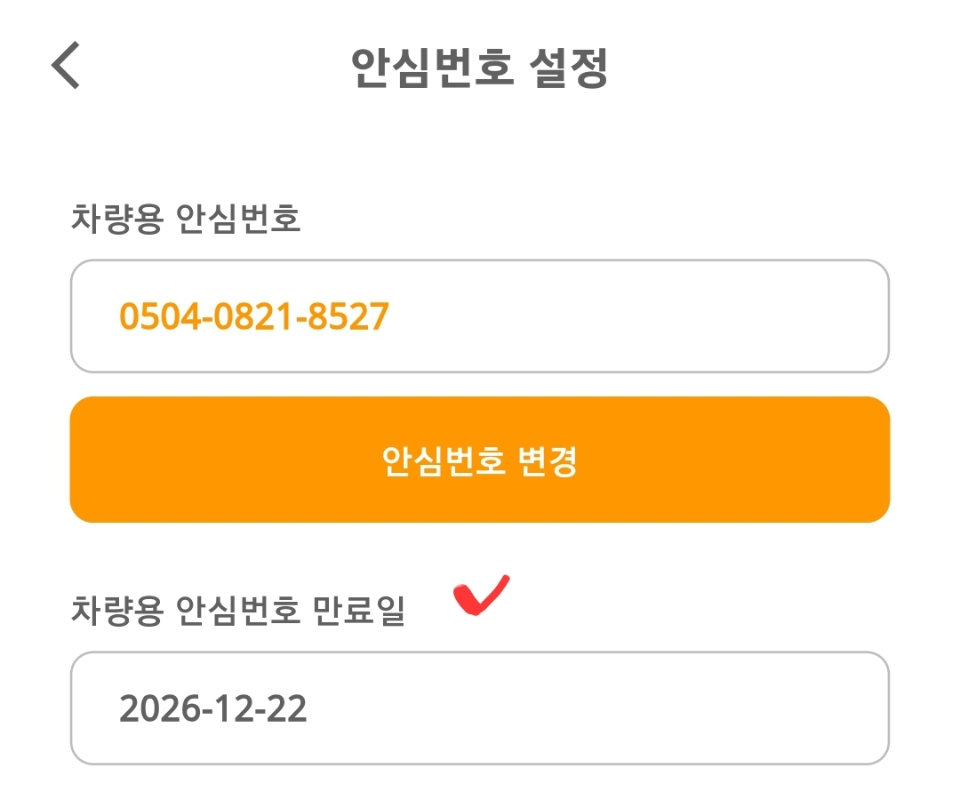 - 차량에 전화번호를 남기는 곳에 안심번호를 표기합니다.