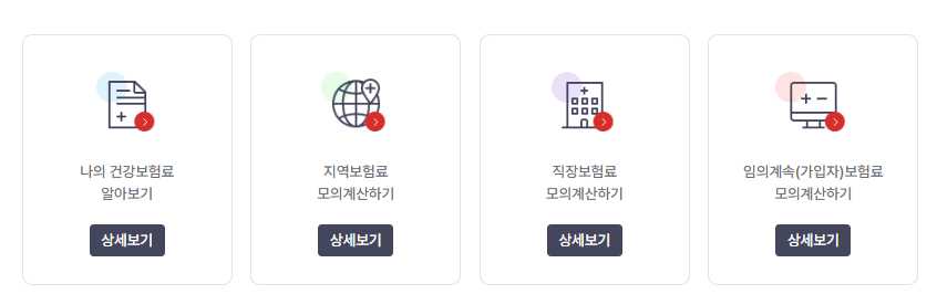 모의계산은 국민건강보험공단 공식 홈페이지에서 계산을 해볼 수가 있습니다.