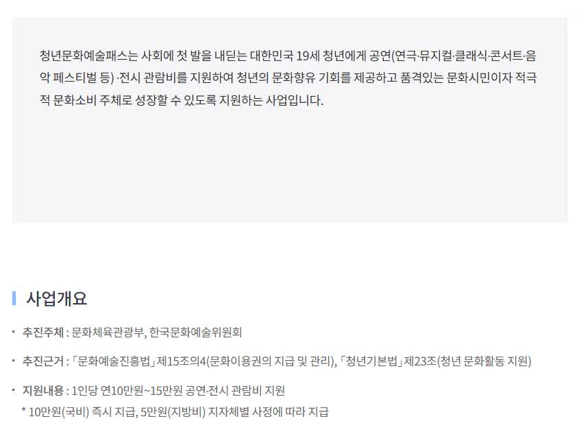 청년문화예술패스는 우리나라 국적을 가진 만 19세 청년들에게 공연 및 전시 관람 비용을 지원하는 사업인데요, 2025년 기준으로 2006년생들이 대상이며, 이제 막 성인 된 청년들이 문화시민으로 거듭날 수 있도록 기회를 제공하고 문화예술 소비를 촉진하기 위해서 문화체육관광부와 한국문화예술위원회를 통해서 시행이 되고 있습니다.