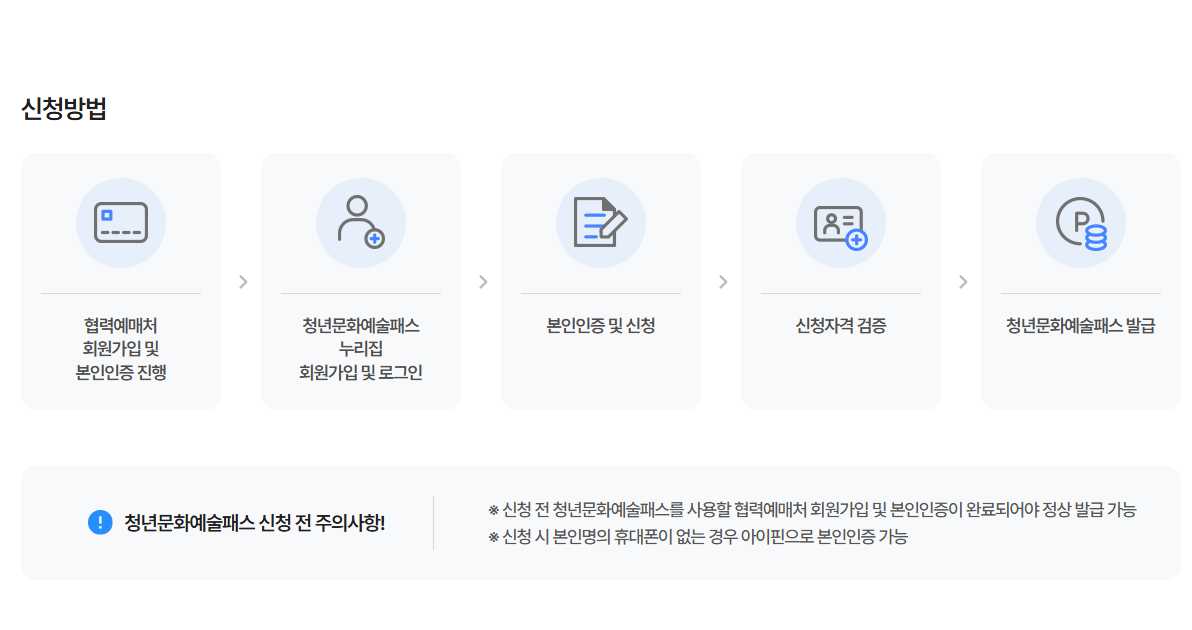 청년 문화예술패스 신청은 선착순으로 진행이 되며, 공식 누리집과 인터파크, yes24 등에 접속하여 온라인으로 신청이 가능합니다.