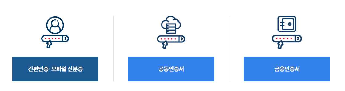 3.간편인증, 공동/금융 인증서, 모바일 신분증을 통해서 로그인을 합니다.