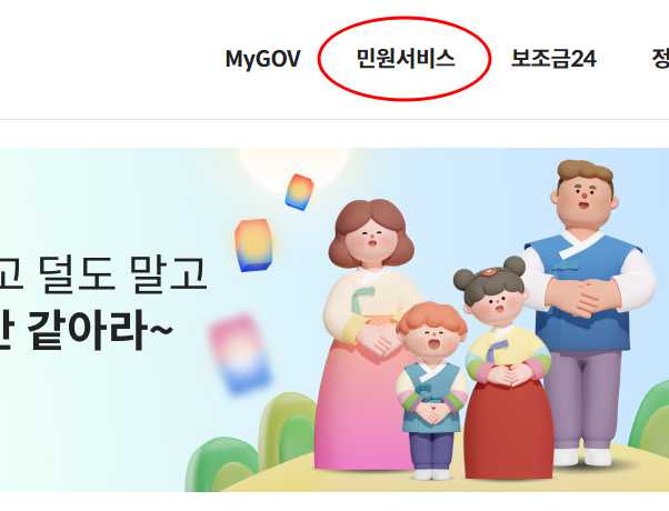 2.상단메뉴에서 민원서비스를 클릭합니다.