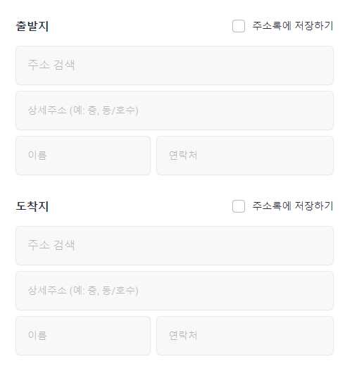 3) 그리고 출발지 주소와 성함 및 연락처를 입력하고, 도착지도 입력해줍니다. 위치 정보를 정확히 입력해야 요금이 더 나오는 상황이 발생하지 않으니, 최대한 정확하게 입력해줍니다.