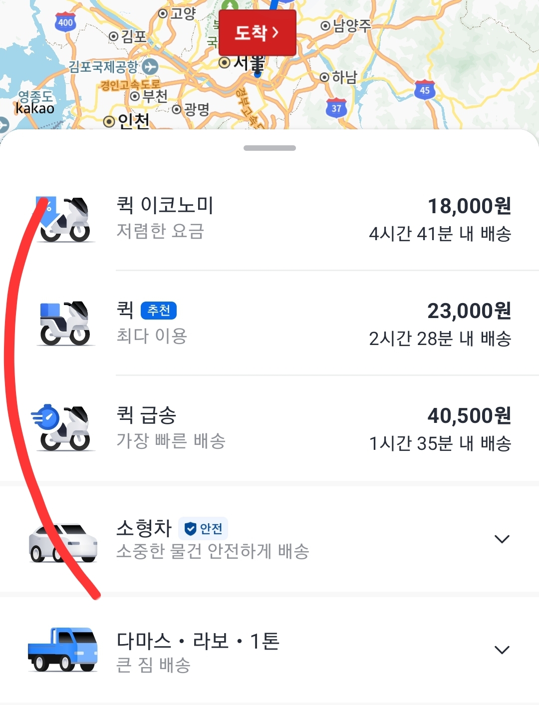 그리고 결제를 해서 퀵을 이용하시면 됩니다.
