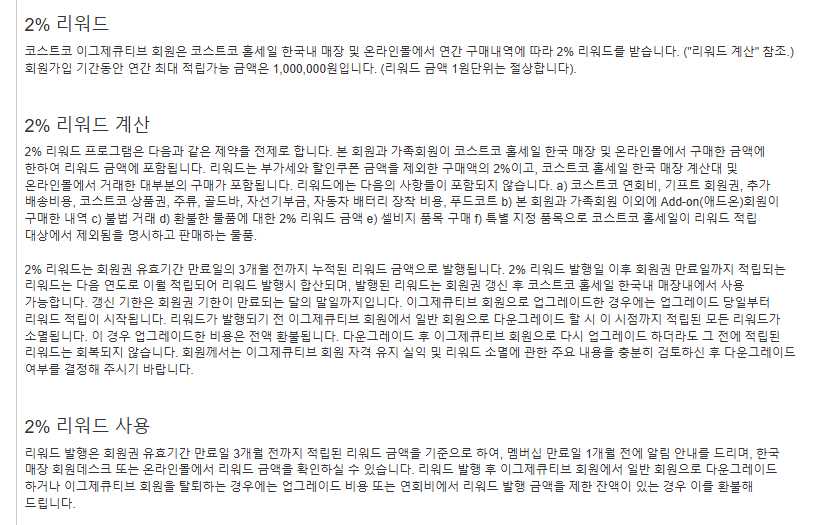 코스트코에서 구매를 하는 양이 상당히 많은 이그제큐티브 회원의 경우에는 오히려 더 혜택이 좋아졌다고 볼 수 있습니다.