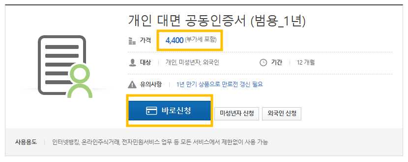 8) 카드, 휴대폰, 계좌이체 중에 편한걸로 결제를 해줍니다. 1년을 하셨다면 4,400원의 인증서 비용이 발생합니다.