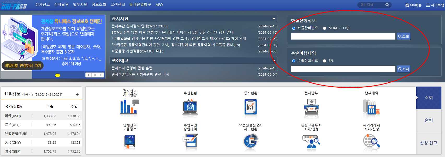 1) 관세청 유니패스 관세종합정보시스템 서비스에 접속합니다.