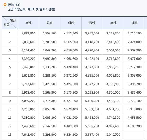 군인 봉급표를 더 자세하게 확인하고 싶으신 분들은 대한민국 누리집 공식 홈페이지에 나와있는 봉급표를 참고하시기 바랍니다.