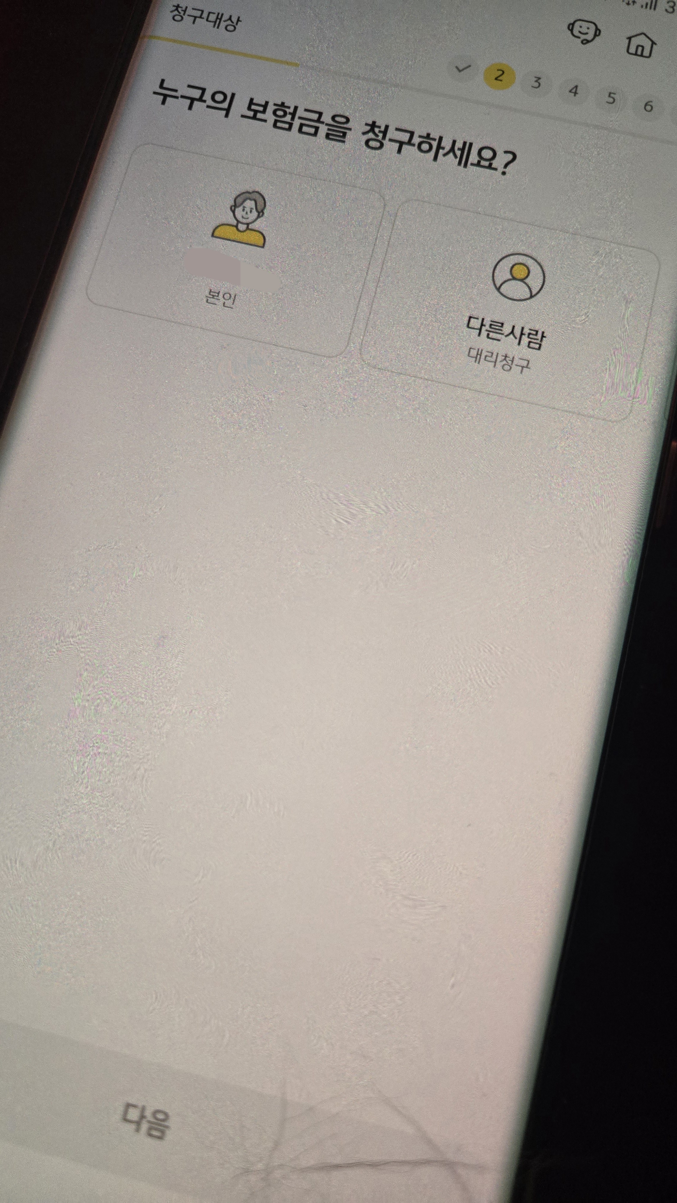 그리고 피보험자 본인의 청구를 직접하는 경우에는 본인을 선택하시면 됩니다.