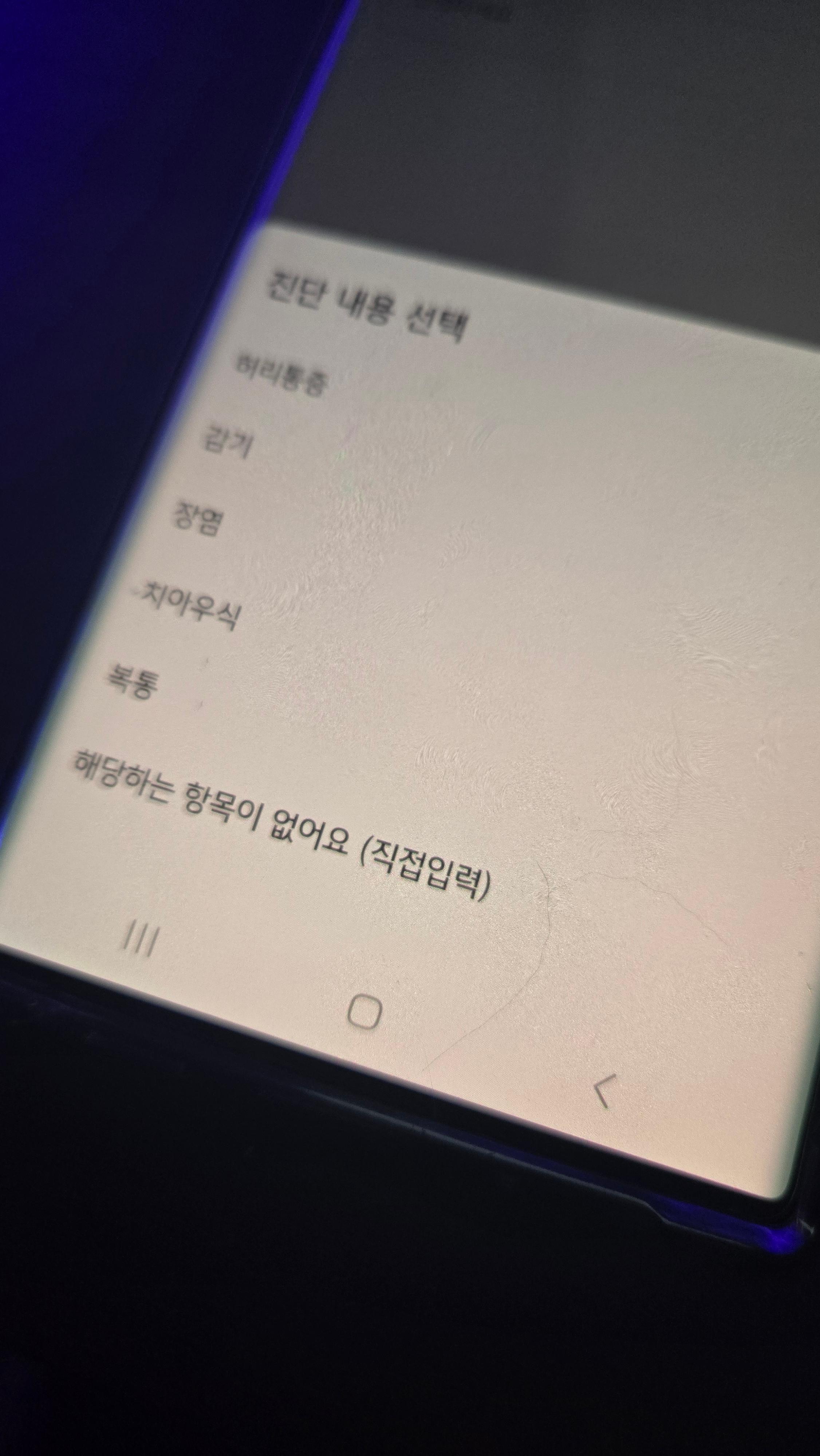 그리고 다쳐서 병원에 간 경우에는 상해를, 별 다른 사고없이 아픈 경우에는 질병을 체크해주시고 진단 내용을 직접입력하거나 선택해주시면 됩니다.