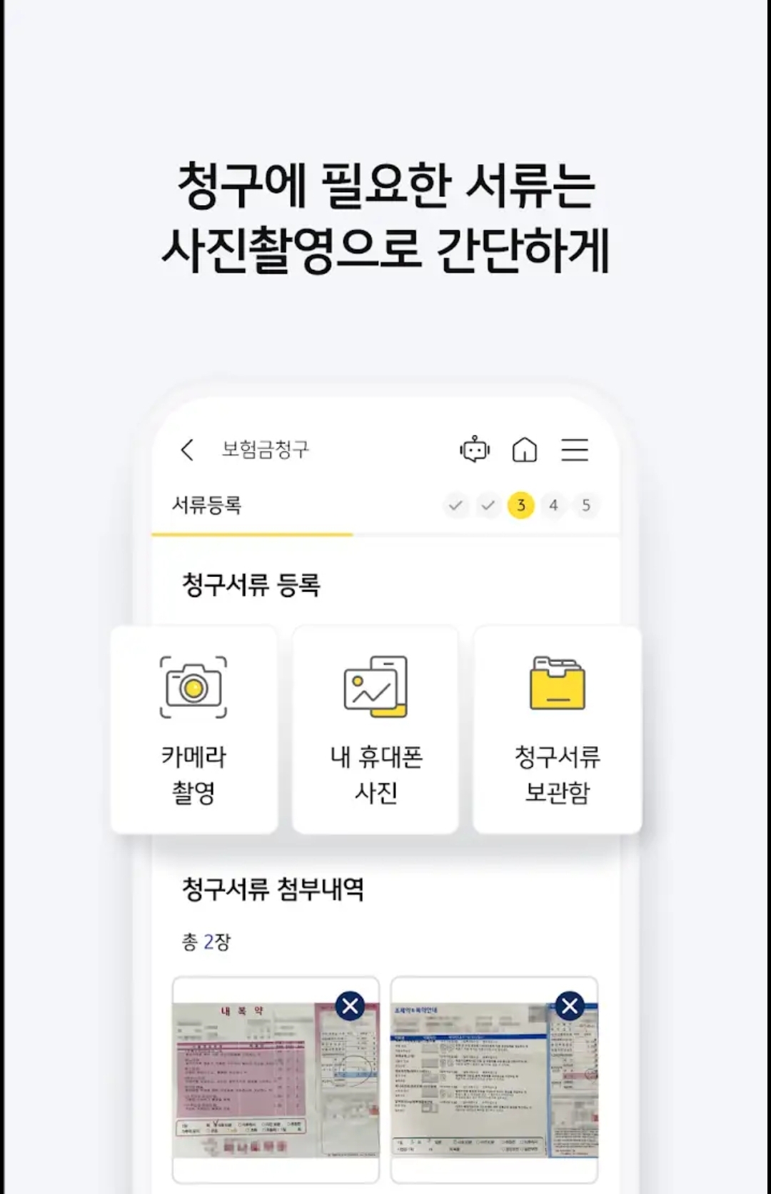 보험금을 지급받을 계좌를 입력해주고 내 휴대폰 사진을 눌러서 서류들을 직접 촬영한 사진을 선택해주고 청구해주시면 됩니다.