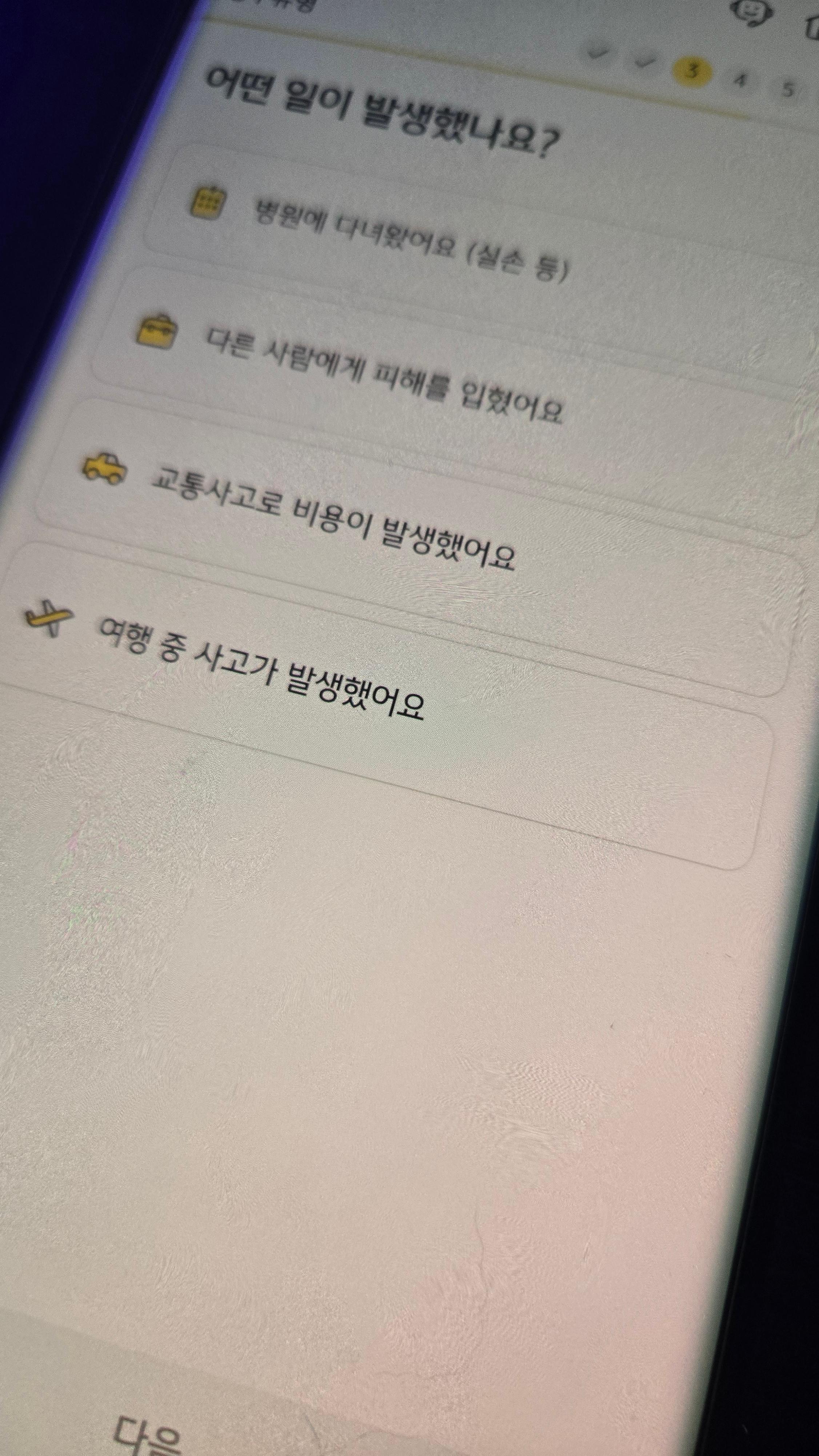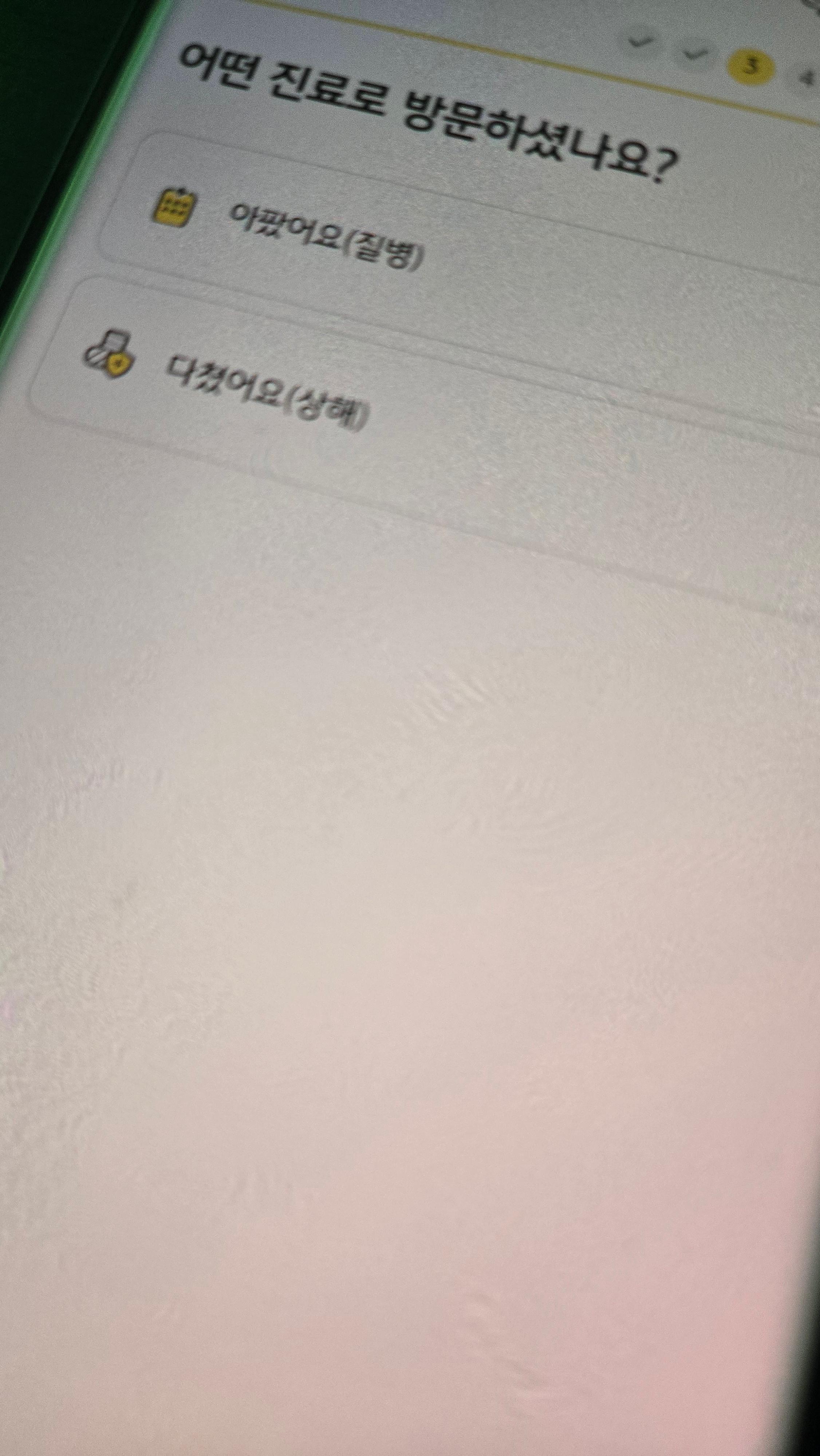 그리고 여러 항목 중에서 해당하는 사항을 선택해주시면 됩니다. 일반 실비청구의 경우에는 가장 위에 있는 병원에 다녀왔어요를 눌러주시면 됩니다.