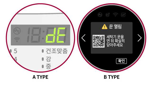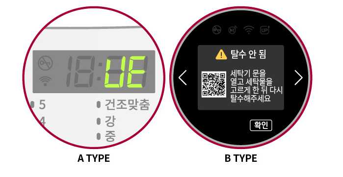 - 빨랫감이 커서 문을 바깥쪽으로 너무 압박하고 있는 경우에도 발생을 할 수 있음