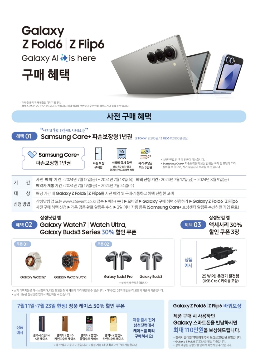 - 갤럭시워치7, 워치울트라, 버즈3프로, 버즈3를 30%할인 가격으로 구매가능